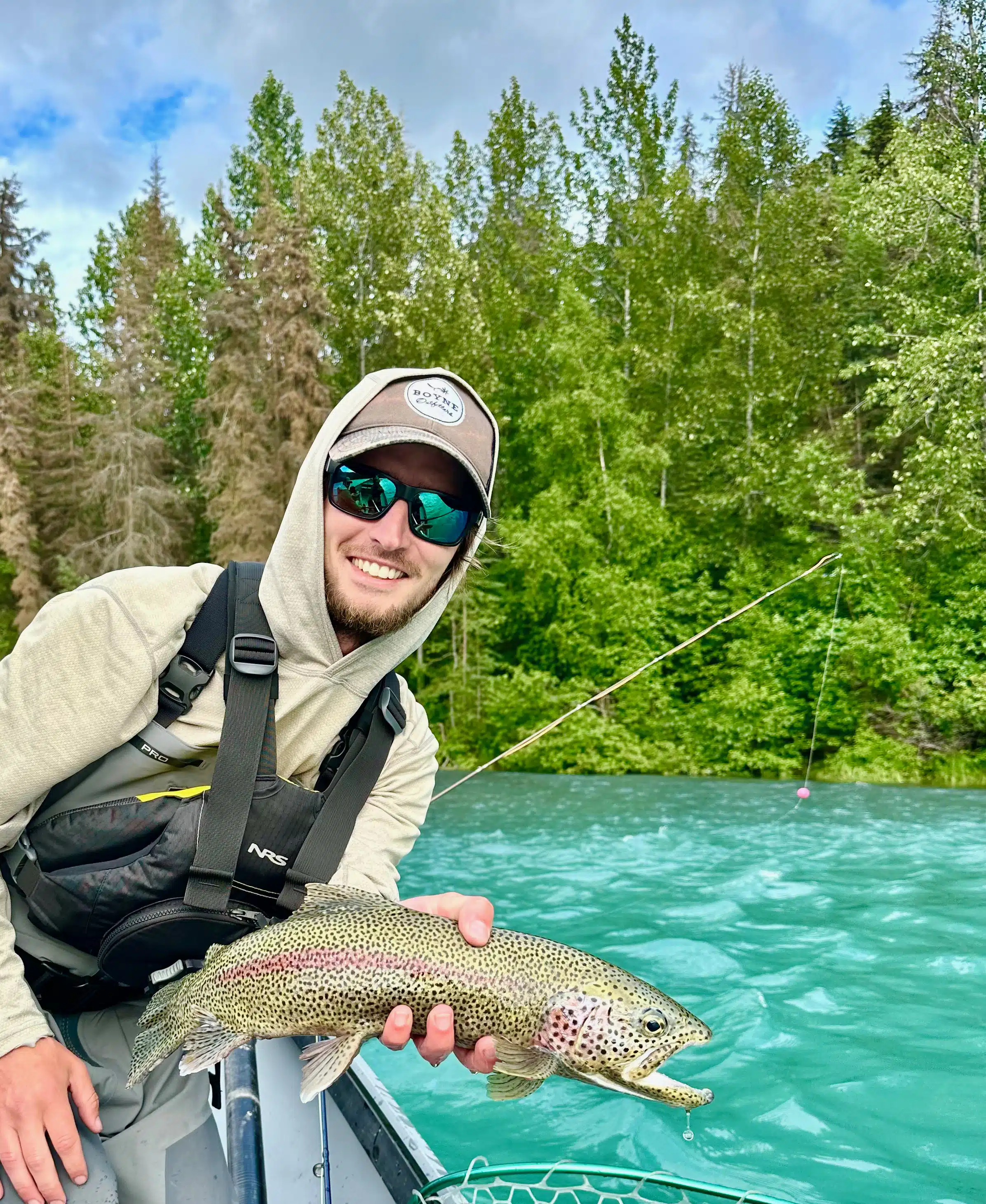 The Kenai receives a run of pink salmon in even years (2024, 2026, etc.), which adds even more food to the system. Bead bites start around mid-August and continue into later September. Late in September, the spawned-out salmon complete their life cycle by dying and returning their nutrients to the river. Around this time, the rainbows and dolly varden will eat flesh patterns, leeches, and beads.