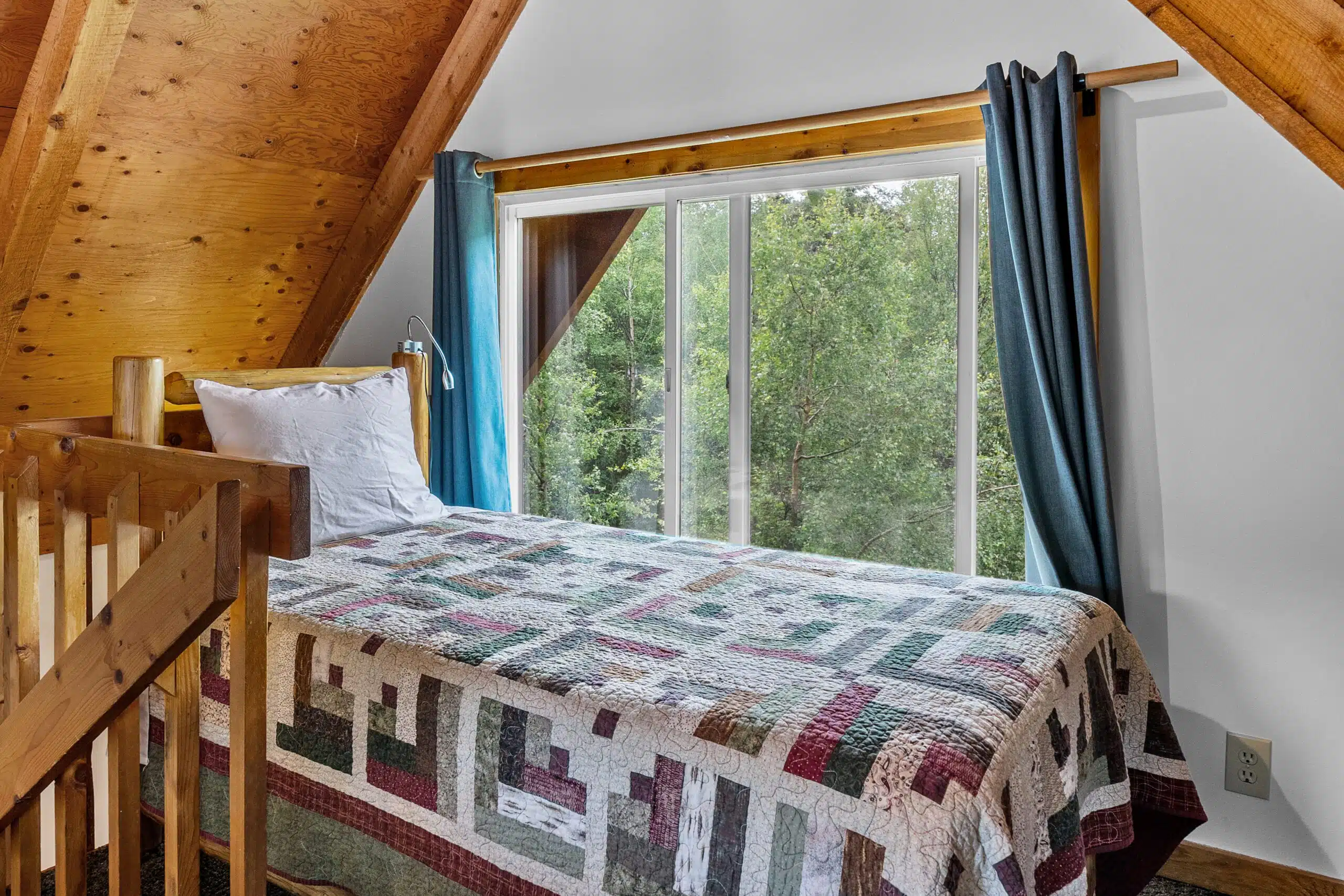 - Beds: 1 queen bed and 2 twin beds in an upstairs, open loft