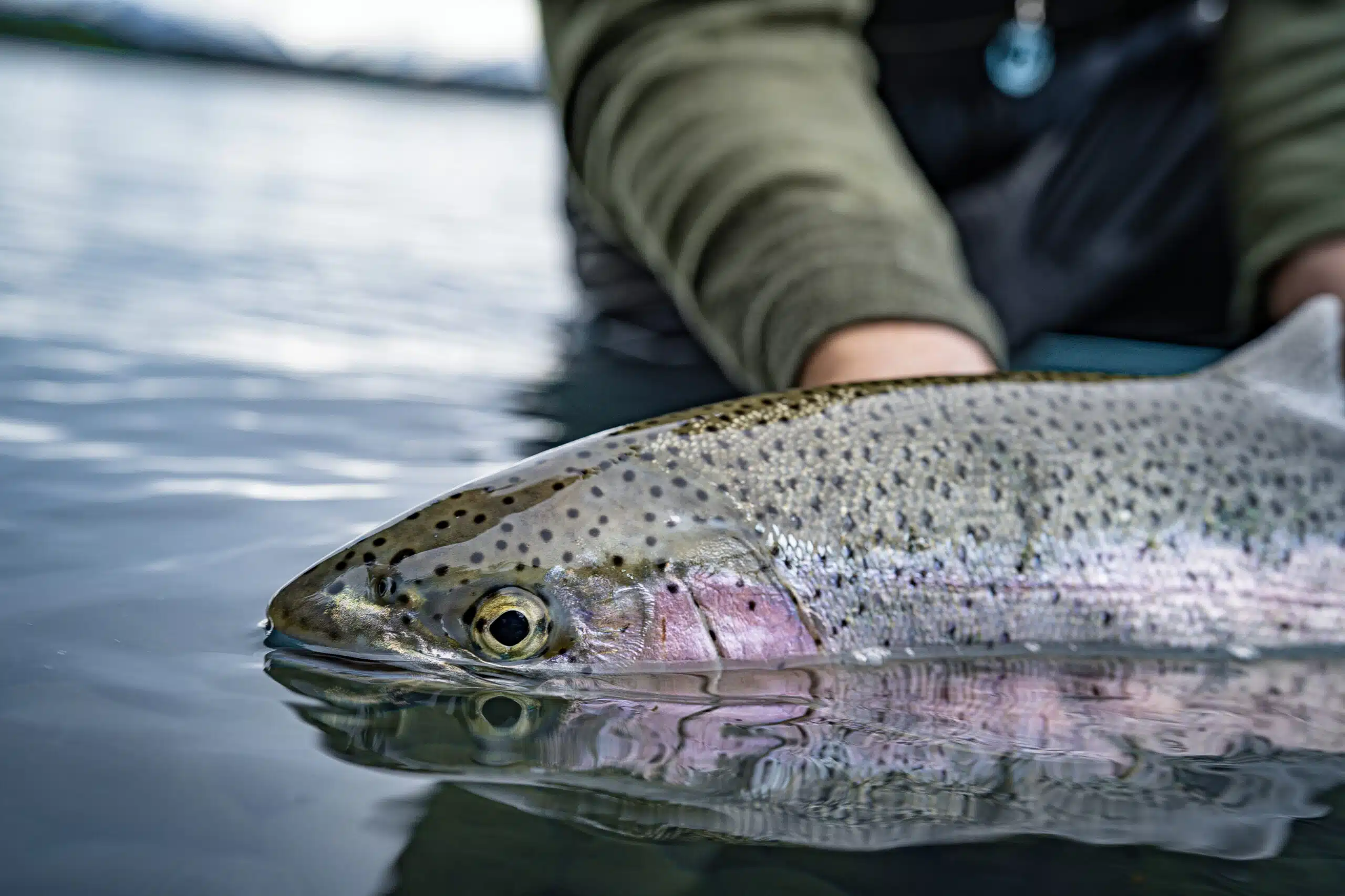 This trip is a guide favorite due to the consistent action and chance at an extraordinary fight and fish of a lifetime. Our fly fishing techniques are suitable for beginners and experts alike. We also offer the option of spin fishing. Rainbow trout and dolly varden are catch-and-release only.