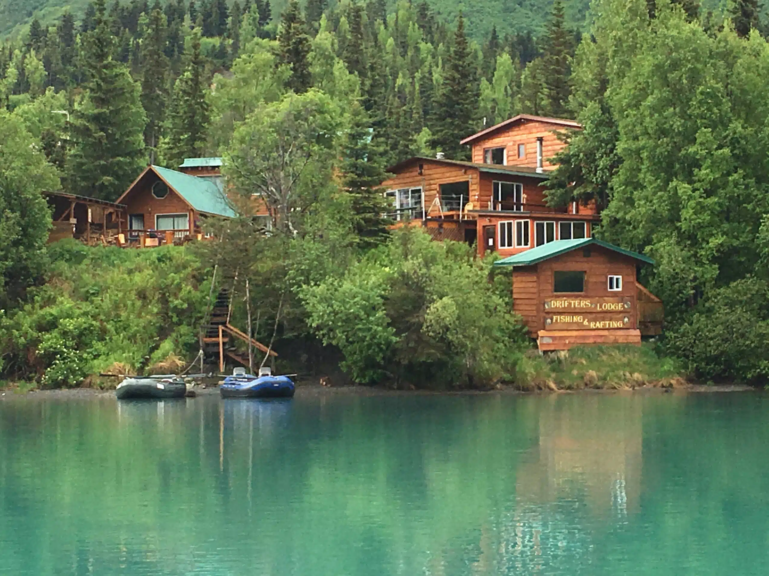 Drifters Lodge is a small, locally-owned and operated lodge in Cooper Landing, Alaska. Our Kenai River Accommodations are cozy, rustic, and the perfect place to relax after a full day of fishing or activities. Each cabin has views of the river and nearby mountains, along with a porch from which you can take in the spectacular scenery. All lodging and package guests will be able to use the riverfront Swedish Sauna with views of the Kenai River and mountains, enjoy the nightly riverside campfire and grab breakfast from our cozy Breakfast Nook.