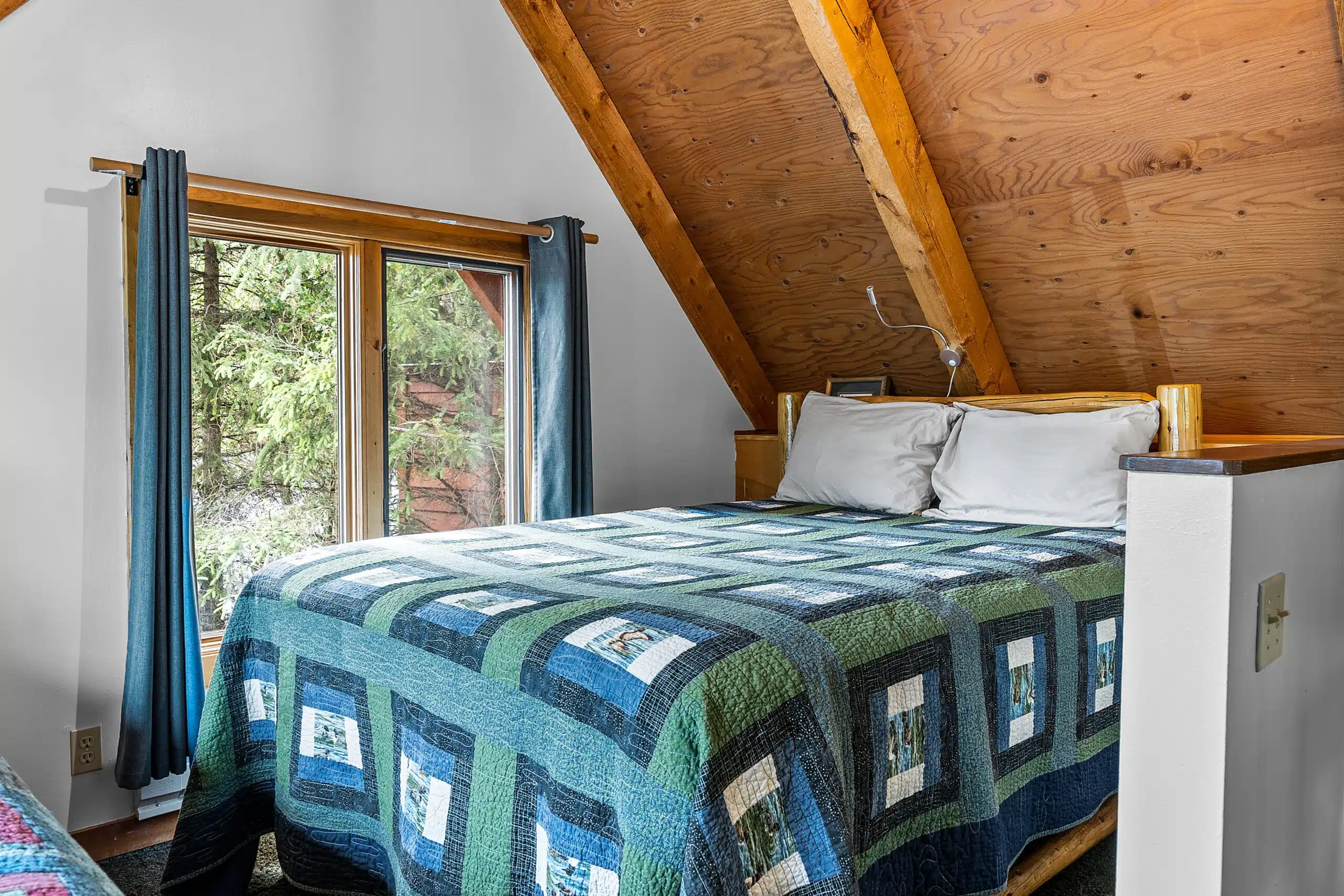 - Beds: 1 queen bed and 2 twin beds in an upstairs, open loft